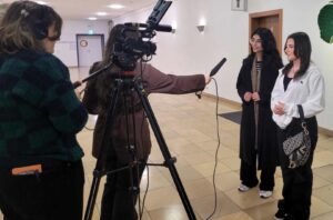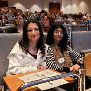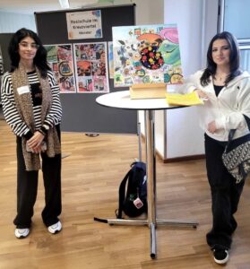 Die Schülerinnen und Schüler präsentierten dem Publikum ihre Projektideen. So auch Eman: Sie stellte vielen Interessierten ihr Kunstwerk vor und beantwortete sehr professionell alle Fragen. Dabei wurde sie ganz toll von ihrer Mitschülerin Asmehan (10a) begleitet und unterstützt!
