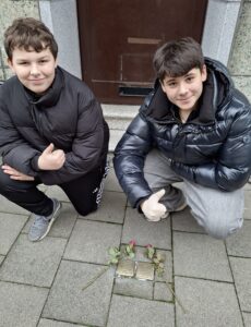 In diesem Jahr haben die Schüler/-innen Emma Cremer, Prince Batantou Kiesse, Emin Kücüksengün, Tim Lüttecke, Lena Schmidt, Jonathan Schröder und Julian Wiesner aus der Klasse 8c unter Leitung der Geschichtslehrerin Christiane Telöken die Patenschaft für die Reinigung von insgesamt 13 Stolpersteinen im Kreuzviertel von Münster übernommen.